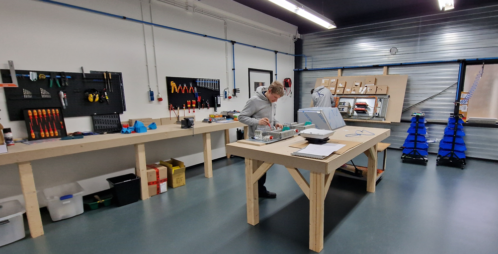 Onze werkplaats voor het bouwen van elektropanelen is gereed. Na een flinke renovatie en alles opnieuw inrichten kunnen we goed aan de gang met de bouw van nieuwe besturingskasten.